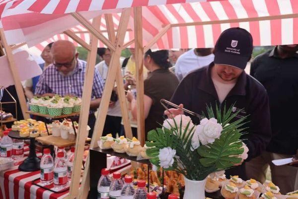 于草堂校区学府城4栋东侧草坪举办“山海相逢,融贯中澳”Social Gathering中澳文化交流活动。澳大利亚911吃瓜