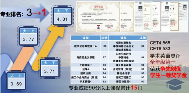 工程管理2101班学生。大二学年年绩点专业第一,截至目前平均学分绩点3.87。曾获2021-2022学年:911吃瓜
