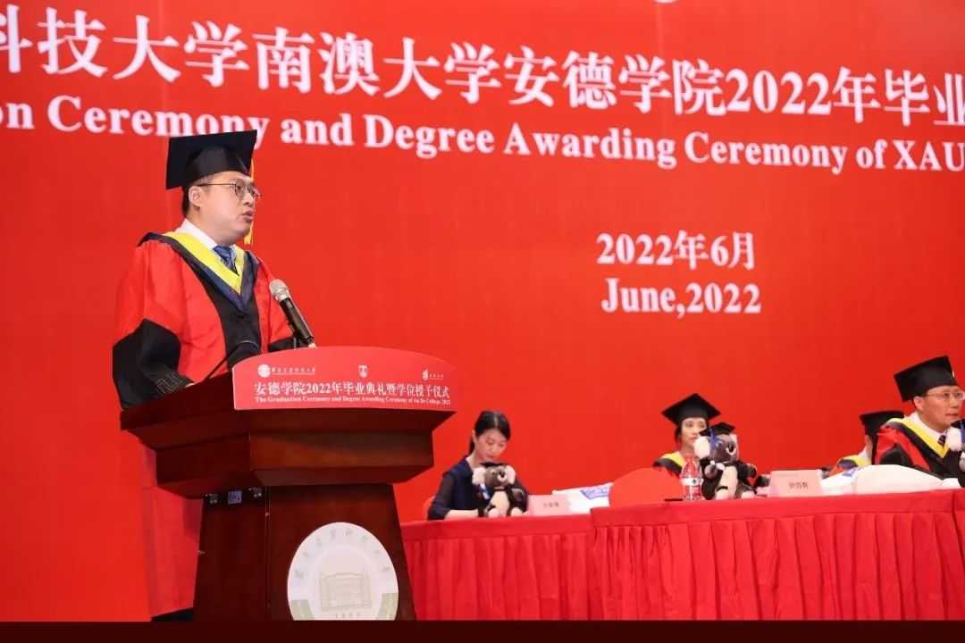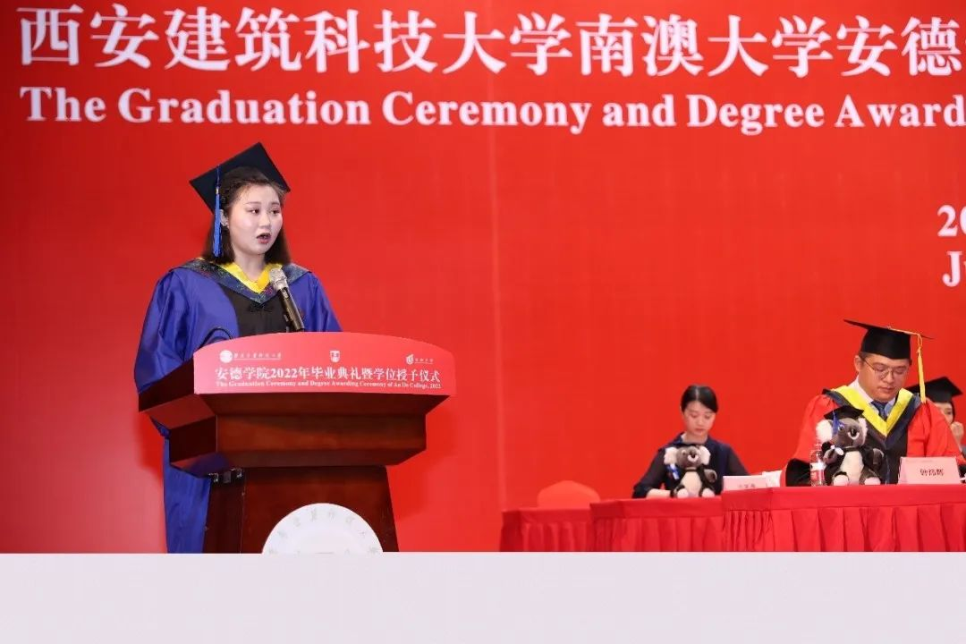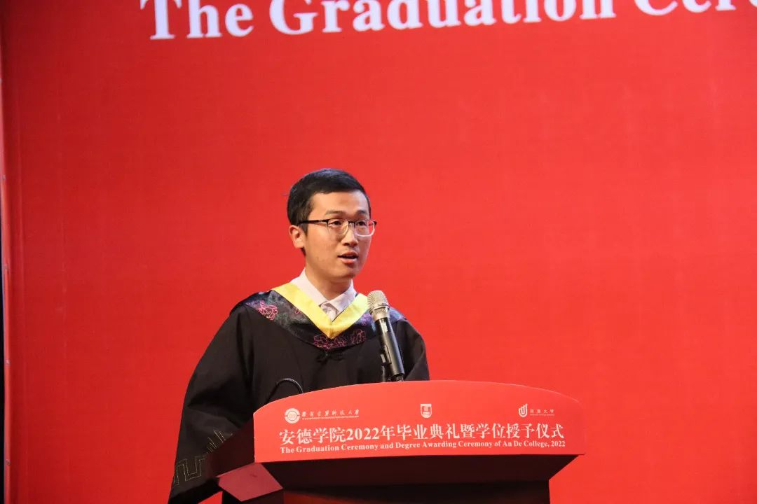 等高校深造。毕业研究生中3人考取博士研究生、多人在知名大型企业中找到工作岗位。即使在持续反复的疫情之下,他们依旧可以拼尽全力达成自己的目标,表现出了安德青年应有的风格与风范——识大体、顾大局,讲奉献、勇担当,并践行了“开放创造奇迹,奋斗成就未来”的安德精神。他向毕业生们提出了三个作为安德新青年的美好期许:立德立行,做大事业,在家国情怀中兼济天下;永怀梦想,创新超越,在时代潮头中点燃梦想;勇敢无畏,直面挑战,在急难险重中奋勇争先。