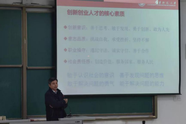 国家进行供给侧结构性改革后,高校人才的供给方式也有了改变。现今社会更需要创新创业型人才,因此,张老师认为学生应该“求学而不是上学,主动而不能被动”。随后,他剖析了我校双创文件,新文件进一步完善了双创激励约束制度,为学生的创新创业活动提供了坚实的保障。