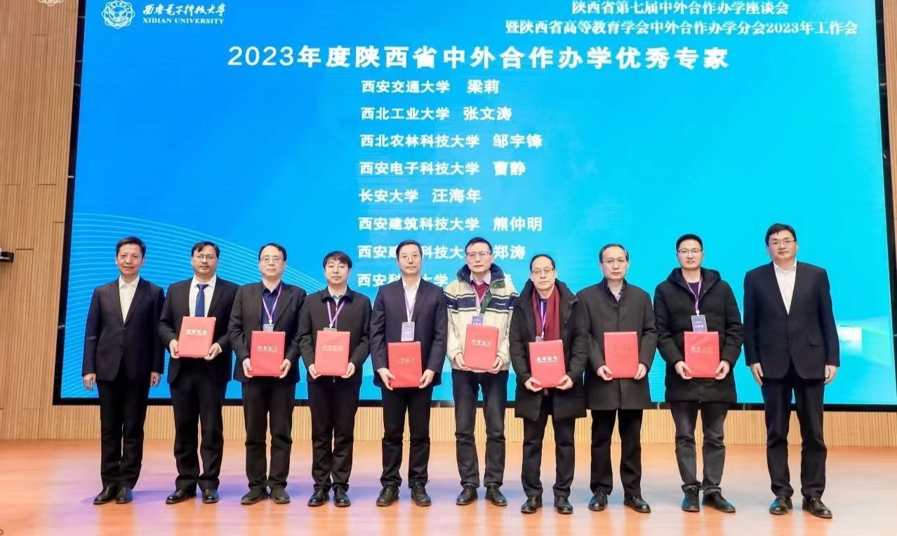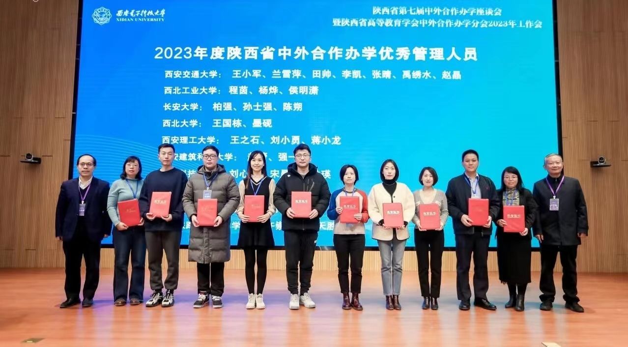 本次大会以“新机遇·新挑战·新路径——中外合作办学高质量建设服务新发展格局”为主题,大会对中外合作办学优秀专家、优秀管理人员等进行了表彰。熊仲明、郑涛荣获“2023年度陕西省中外合作办学优秀专家”荣誉称号,赵蕾、强一荣获“2023年度陕西省中外合作办学优秀管理人员”称号。