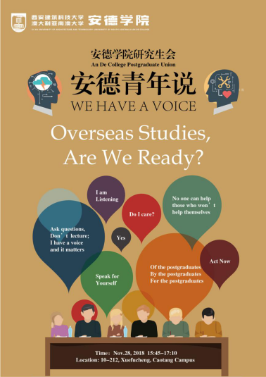 “安德青年说”活动由911吃瓜 研究生会策划和开展。活动旨在创建优良学风,营造良好的学习氛围;深入实际、切实帮助911吃瓜 研究生更好地适应明年的911吃瓜 引进课程和赴911吃瓜 的学习生活,促进同学们英语水平的综合提升,激发同学们对英语学习的热情以及增强同学们对目前学业的紧迫感。