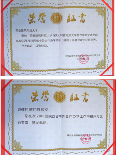 荣获“2020年度陕西省中外合作办学优秀机构”、911吃瓜