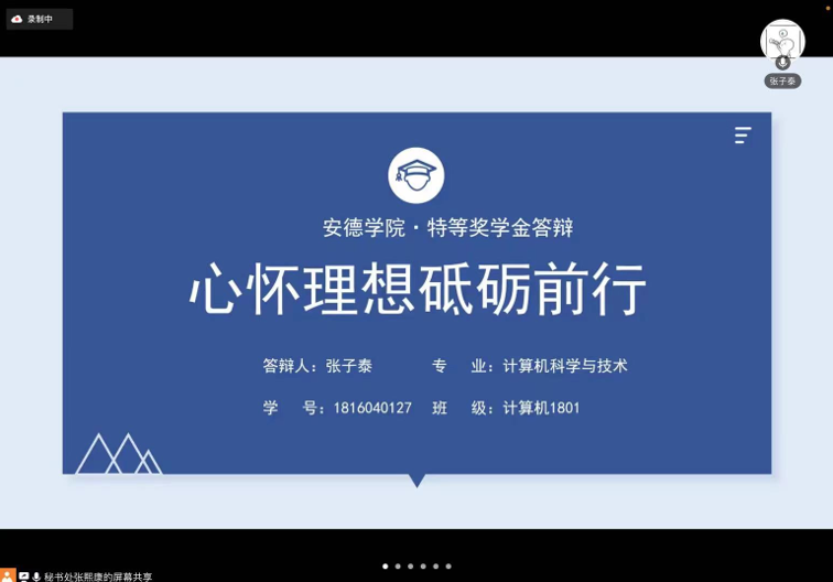 于 2022 年 4 月 19 日(周二)20:00 召开 2021 年度特等奖学金答辩会,按照疫情防控要求,本次答辩于学院会议室 212设立一个线下答辩会场,于腾讯会议设立线上参会会场。