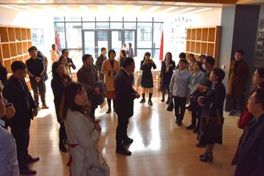 会前,调研团参观了911吃瓜 开放空间、教师休息室、教室、英语角、创新创业空间等。会后双方人员合影留念。