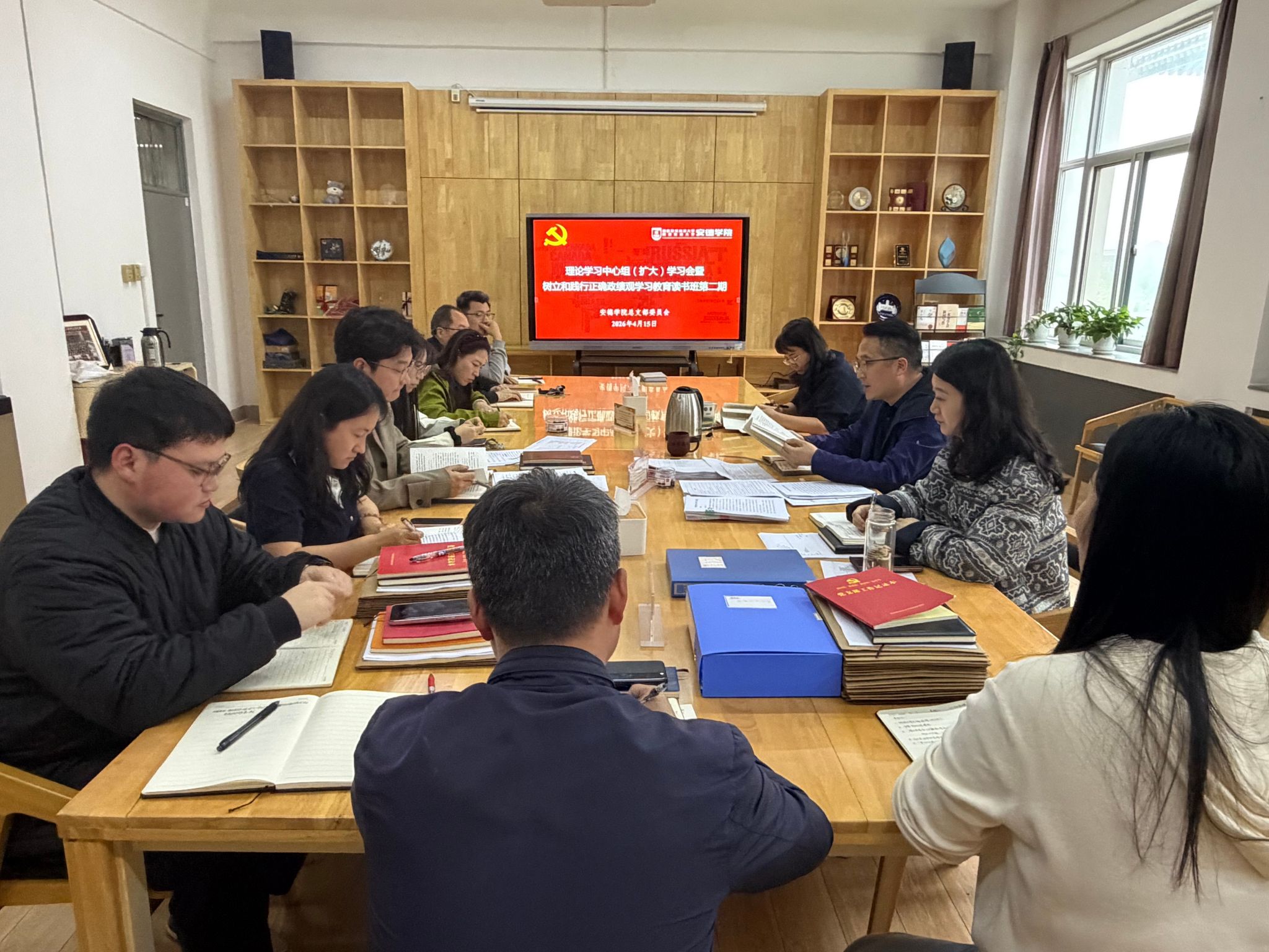 4月15日,911吃瓜 在学院212会议室召开理论学习中心组(扩大)学习会暨树立和践行正确政绩观学习教育读书班第二期。学院党总支委员、纪检委员、各党支部书记、教师代表参加会议,会议由党总支书记罗明忠主持。