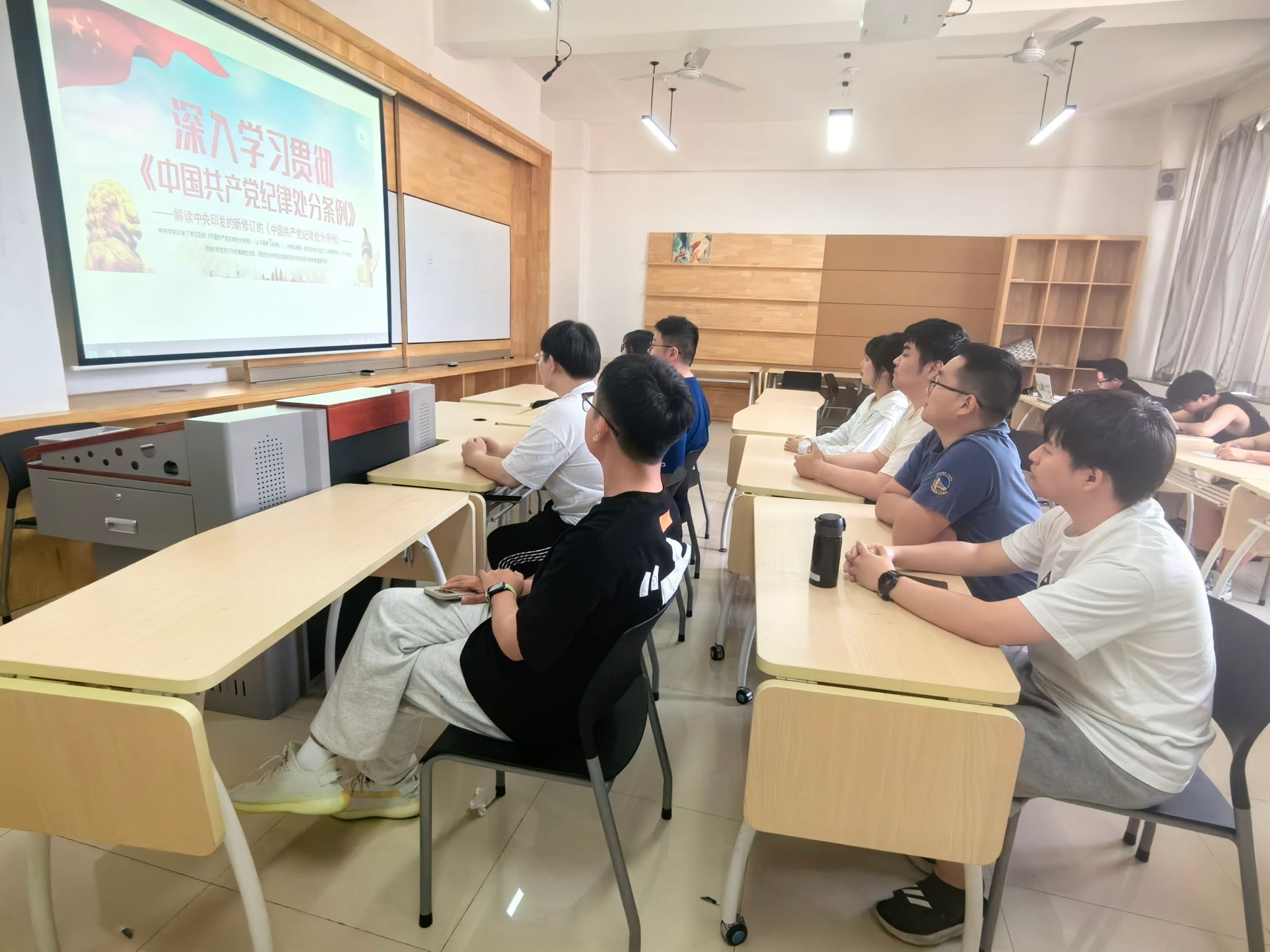 研究生党支部开展党纪学习教育专题学习,支部全体成员参与学习。