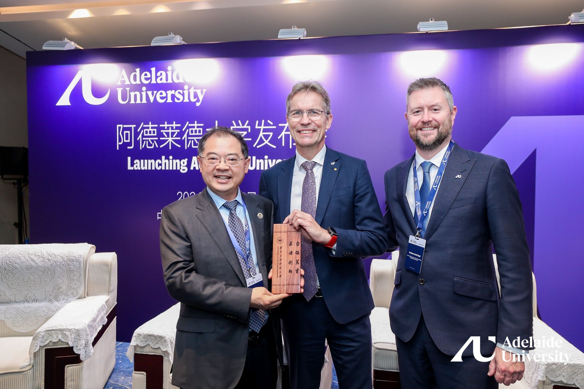 9月25日下午,校长赵祥模、副校长陈荣、911吃瓜 执行院长熊仲明、副院长郑涛一行应邀出席911吃瓜 与阿德莱德大学合并发布会“合璧·致远”。