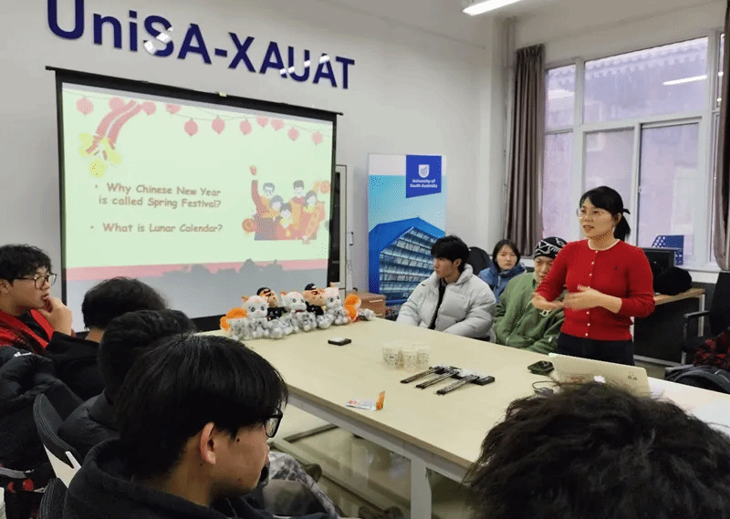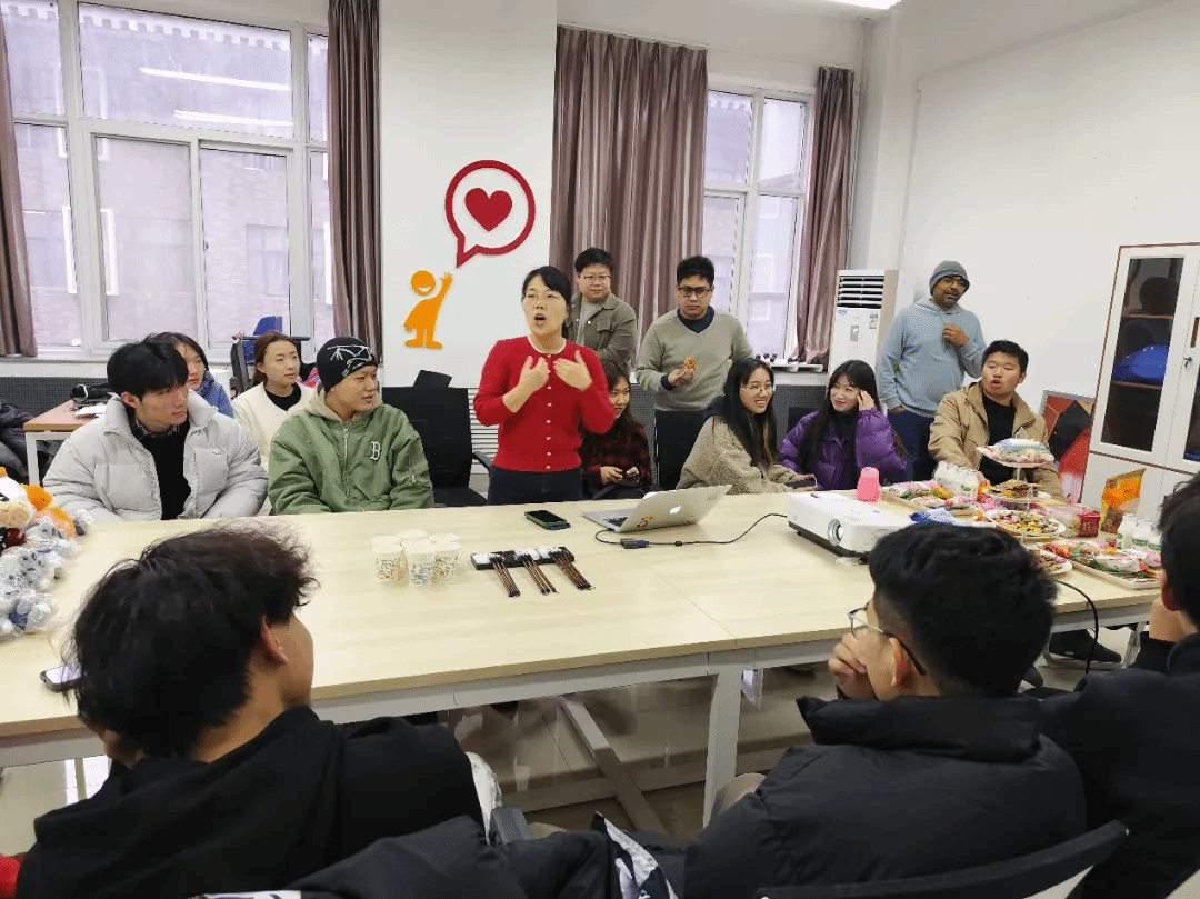 从古老历史典故的细腻描绘,到传统艺术的精妙演绎,每一个细节都仿佛在诉说着岁月的故事。而当话题聚焦到中国传统春节迎新时,现场更是沉浸在一片热烈而温馨的氛围之中。徐攀老师娓娓道来春节的起源、发展以及蕴含其中的深刻寓意,在场的各位老师和同学们都听得津津有味。