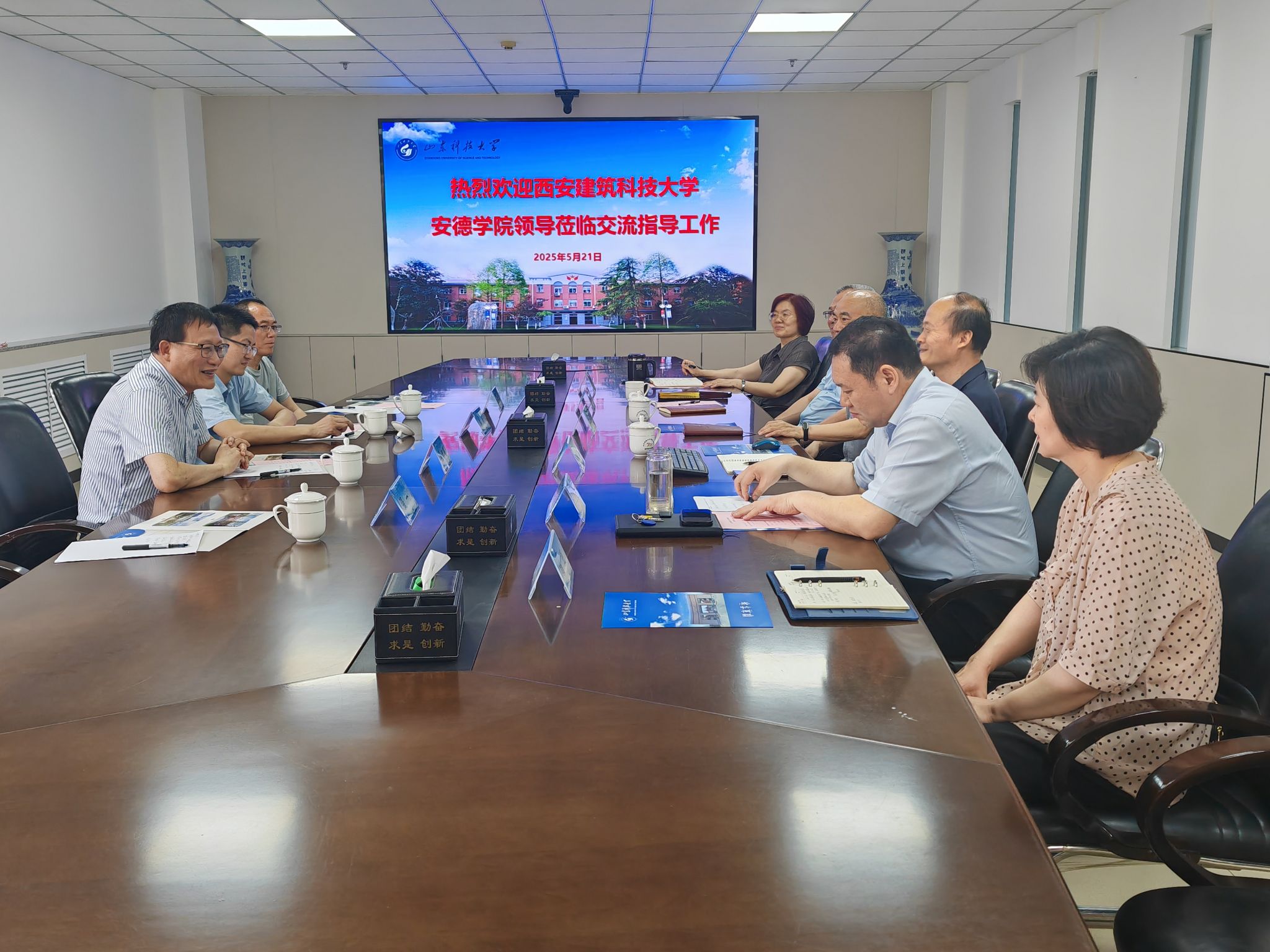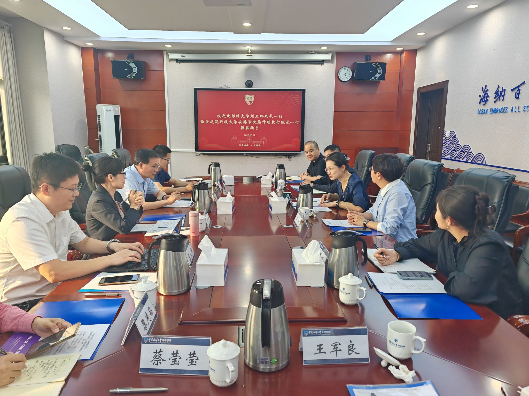 会议期间,熊仲明一行先后同中国海洋大学海德学院、山东科技大学斯威本学院、北部湾大学东密歇根联合工程学院开展座谈交流,就中外合作办学的党建工作、教育教学、管理机制、人才培养、发展规划等方面展开讨论。
