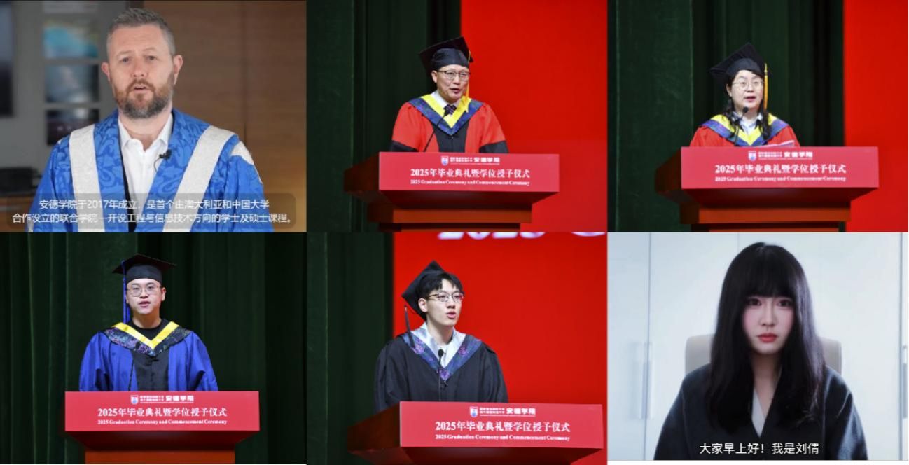 合作办学的丰硕成果,并期待毕业生们在未来的人生舞台上继续发扬两校精神,取得更大成就,成为连接中澳乃至世界的友好使者。