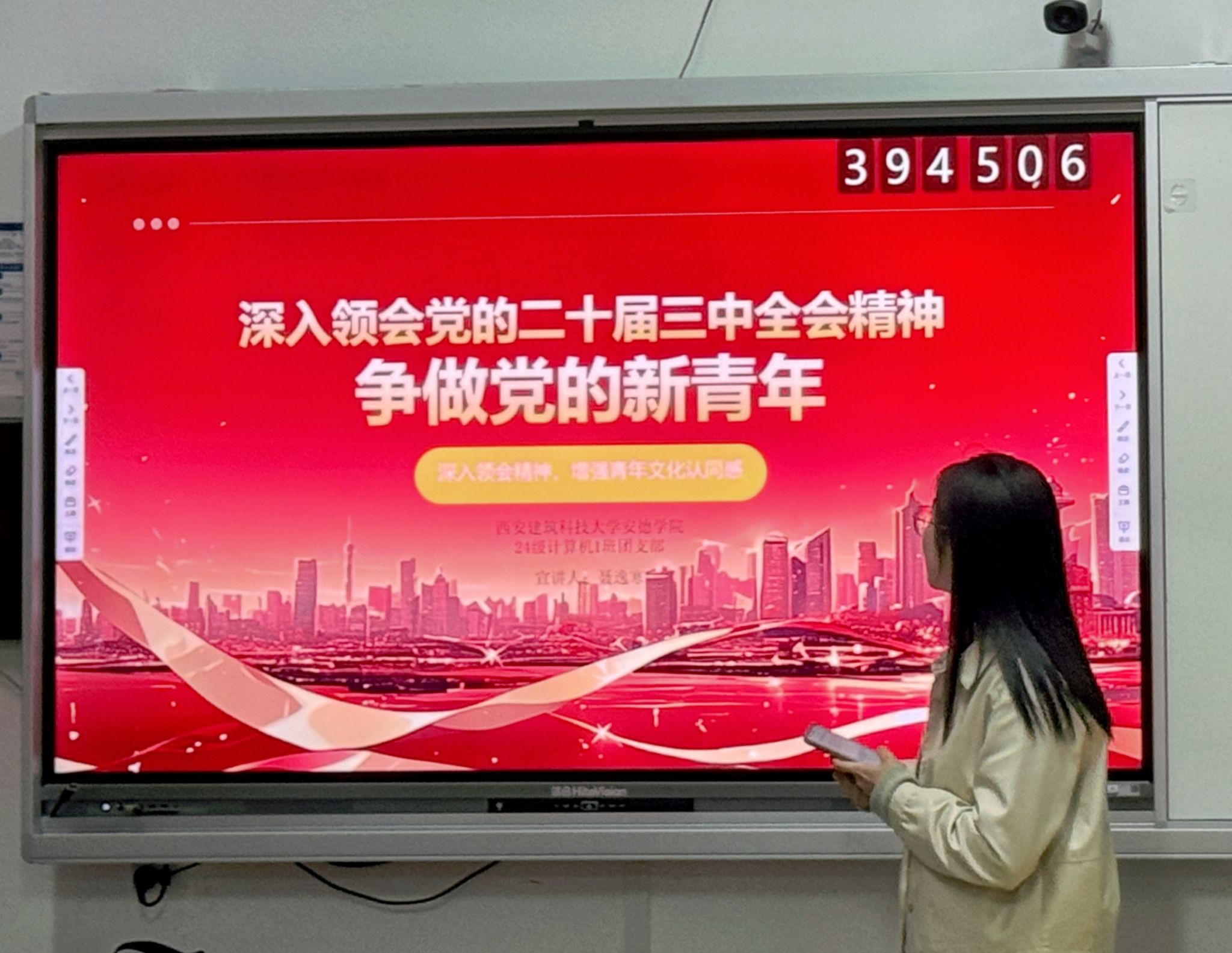 2024年12月24日,计算机2401支部书记聂逸寒组织团支部全体成员开展了“学习党的二十届三中全会精神”团日活动。