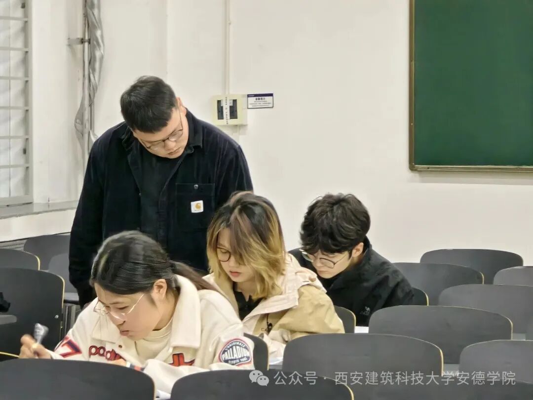 考前,监考人员提前抵达考场,逐一检查考场布置与设备状态,待考生入场后,以清晰、严谨的语气详细讲解考场纪律、答题规范及注意事项,明确违纪处理办法,引导考生自觉遵守考试规则。考试期间,辅导员杜一凡始终坚守考场周边,不间断穿梭于各考位之间巡查,既细致监督考场纪律,及时提醒考生规范作答,又在巡查过程中用温和的眼神为考生加油鼓劲,缓解大家的紧张情绪。