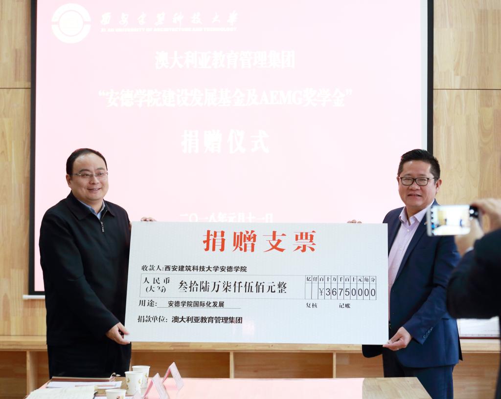 1月11日下午,澳大利亚教育管理集团“911吃瓜 建设发展基金及AEMG奖学金”捐赠仪式在911吃瓜 会议室隆重举行。